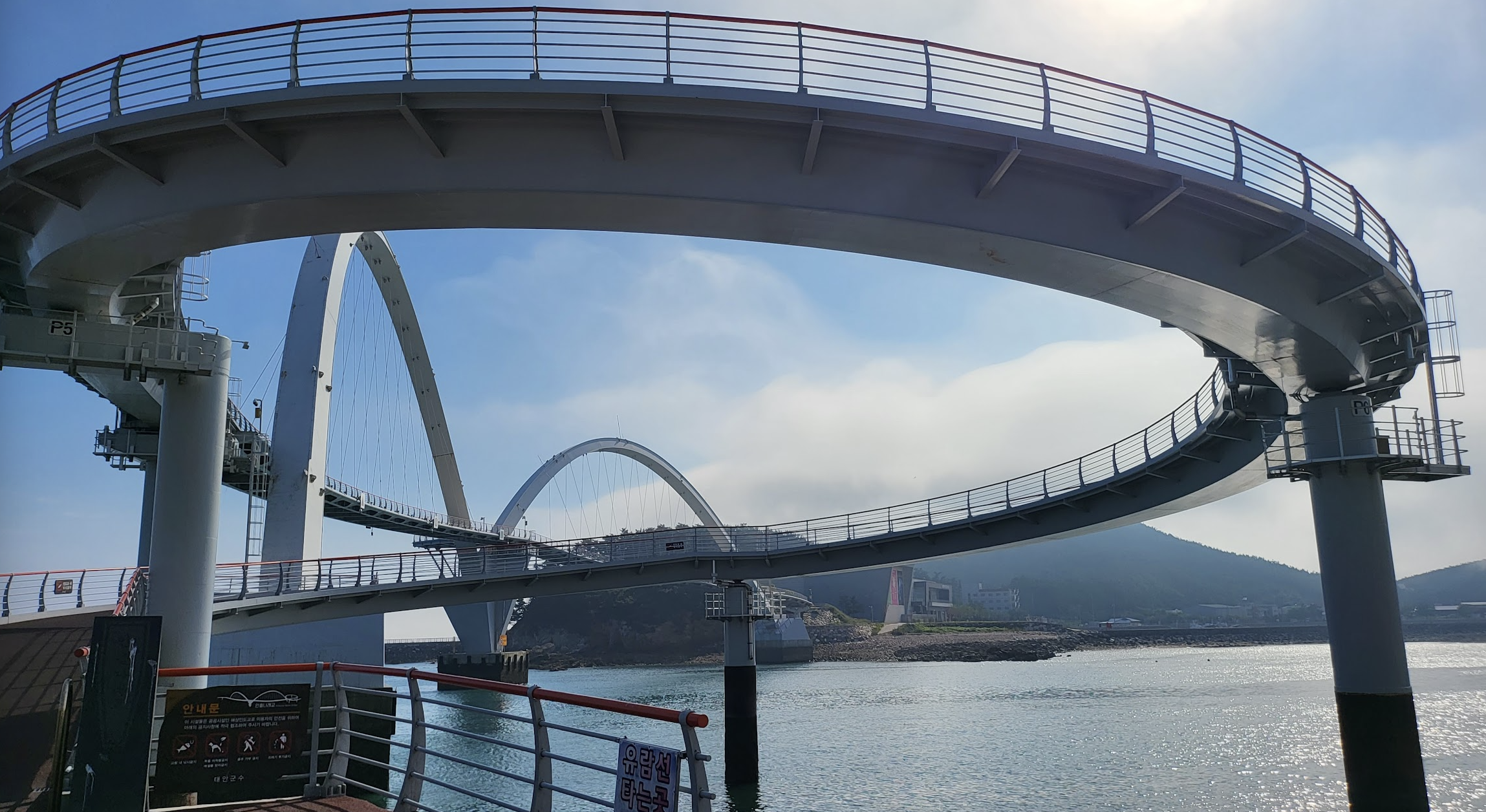 신두리 사구두웅습지태배전망대 가는 길 - 둘레길로 지정되어 산책할 만 함태배전망대 - 날씨는 맑았으나 바다 안개가 짙게 끼어 옥상에서 바라본 바다는 안개뿐이었음안흥성 (안흥진성)안흥 나래교 - 저 끝이 있는 것이 국립태안 해안 유물 전시관임 (무료)안흥 나래교에서 바라본 바다안면송림꽃지 해수욕장 할미할아비바위 낙조