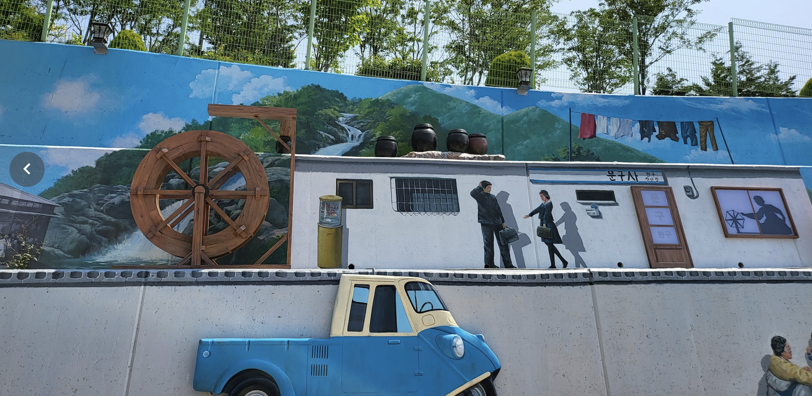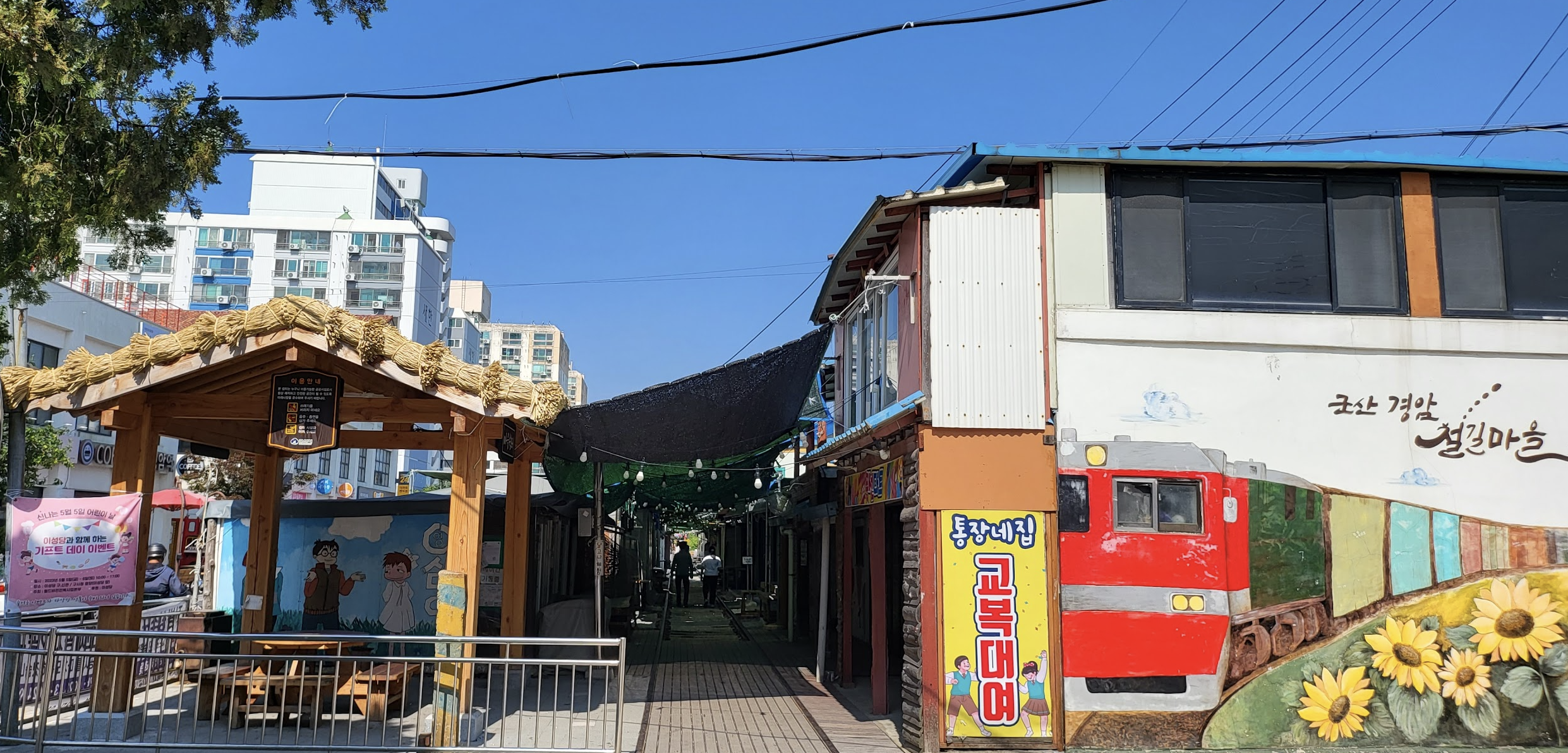 군산 말랭이마을은 근현대 역사를 재현해놨는데 당초 당시 의상 대여후 사진 찍는 것까지 고려해서 벽화와 건물 등을 조성했으나 의상 대여 사업 좌초되어 단순 벽화 마을처럼 되버려 아쉽다 (관리 아저씨가 심심했는지 말 걸어 알려줌)