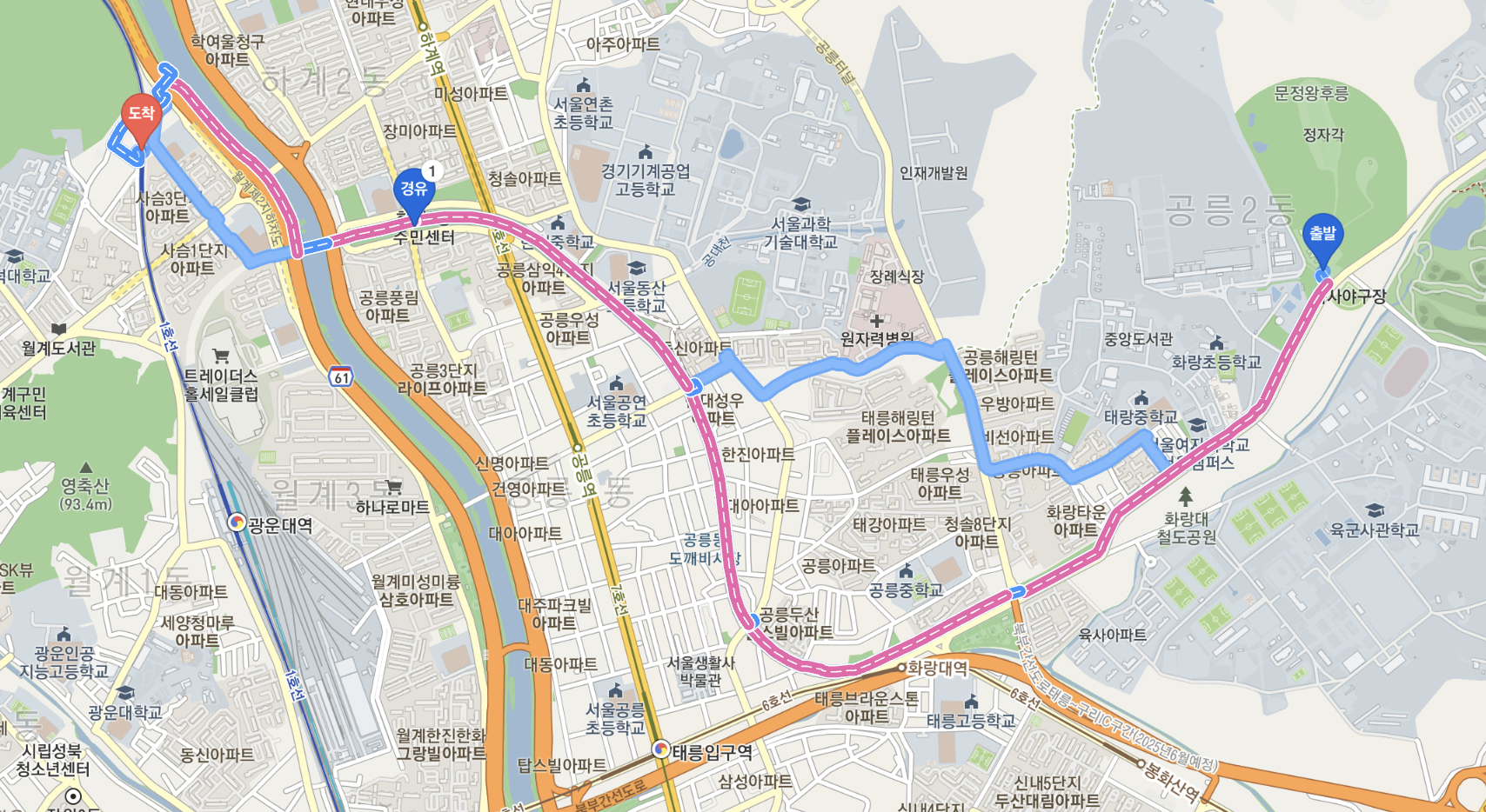 • 경춘선 숲길 후 : 화랑대역, 육군사관학교, 한국스포츠 정책과학원, 삼육대 입구