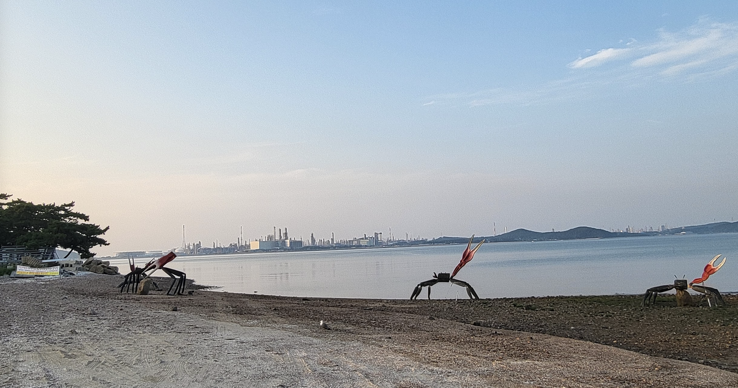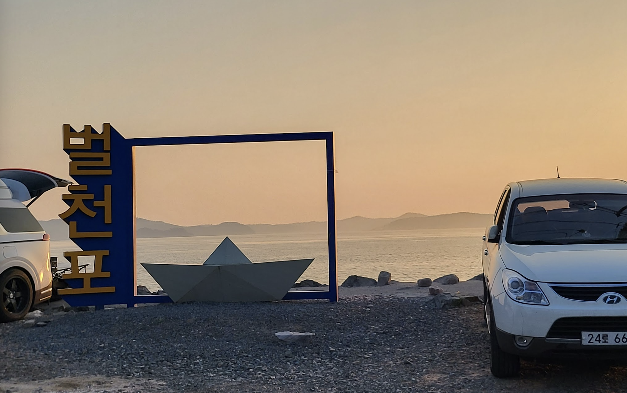 벌천포해수욕장 - 조형물 옆 주차 (여기가 명당인 듯, 차박지 당첨)벌천포해수욕장 - 모래가 아닌 자갈 해변, 저 끝은 유료캠핑장벌천포해수욕장 - 저녁 (흰발농게 조형물, 흰발농게를 찾고 싶었으나 결국 못찾음)벌천포해수욕장 - 일몰벌천포해수욕장 - 일출 (차 앞쪽에서 찍은 사진임, 어제 드러났던 자갈밭이 밀물로 잠겼음)